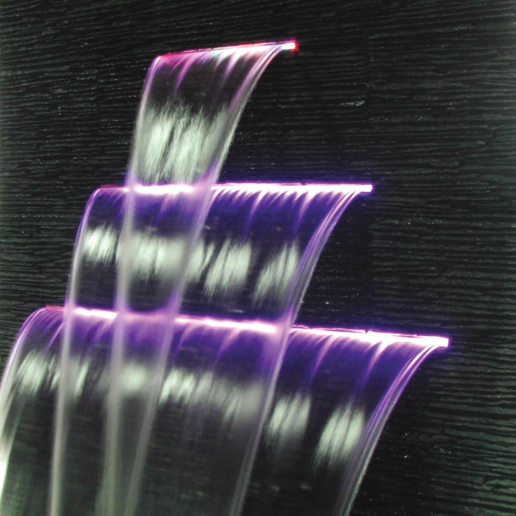 Az opcionálisan választható RGB LED izzósáv élénk színeket varázsol a vízfüggönyre, ami látványban sem utolsó, de mindemellett a vízkésnek köszönhetően a víz esése is könnyedebb lesz mely lágy és nyugtató hangatást eredményez.