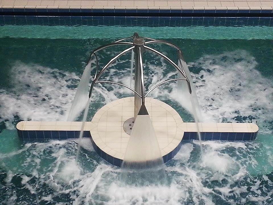 Medence élményelem, kiváló minőségű, esztétikus megjelenésű esernyő alakú vízköpő, rozsdamentes acélból.