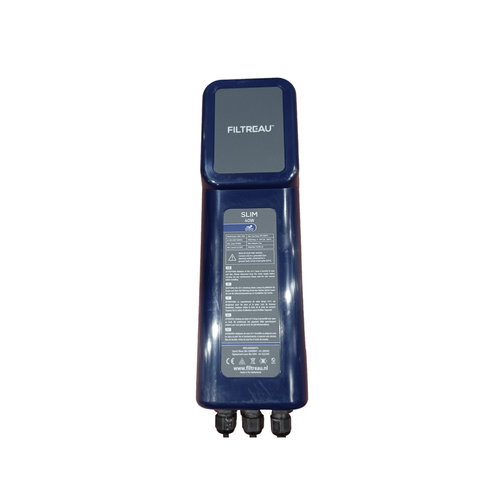 Rákötve az elektromoshálozatra, ez a készülék biztosítja az áramot a Filtreau Slim típusú UV fénnyel fertőtlenítő lámpának.
