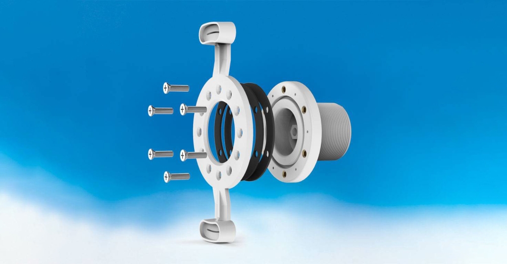 Kíváló minőségű Gemas szerelő készlet exkluzív LED izzós falon kívüli víz alatti világítás beszereléséhez. Fóliás medencéhez.