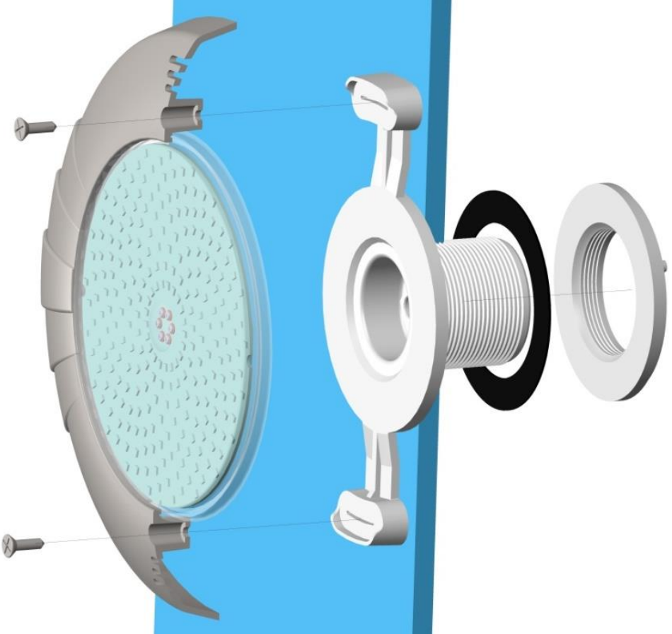 Kíváló minőségű Gemas szerelő készlet exkluzív LED izzós falon kívüli víz alatti világítás beszereléséhez. PP/Poliészter medencéhez.