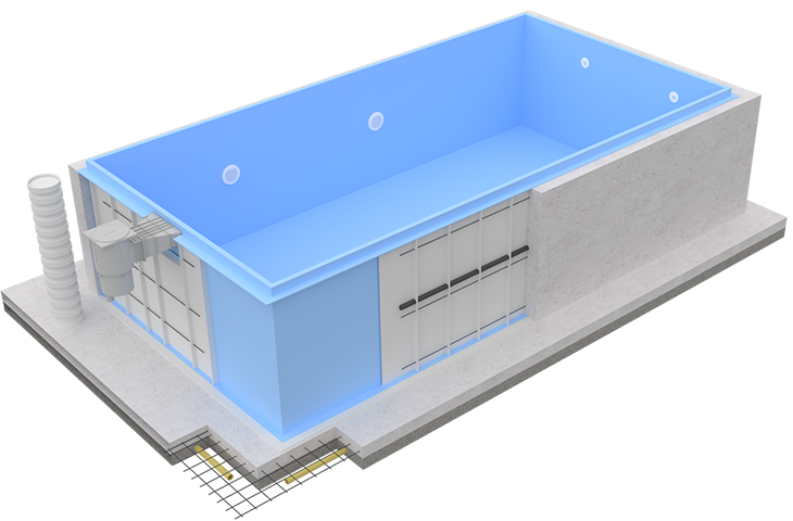 Medencetest8m x 3m x 1,5m, 6mm vastagságú medencetest (adria kék színben), szögletes sarokkal